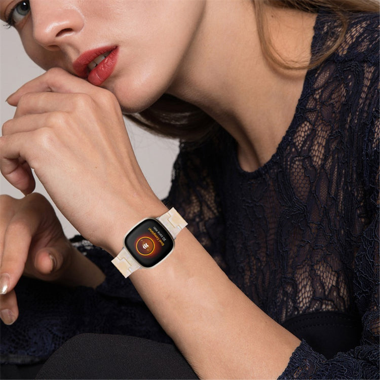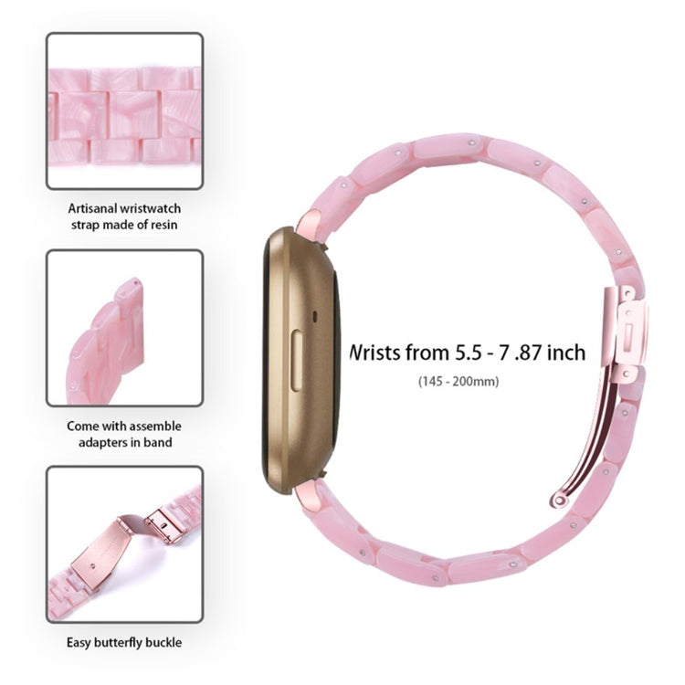 Vår klokkerem for Fitbit Versa 4 / Sense 2 er det perfekte tilbehøret for å oppgradere stilen din. Laget av høykvalitets resinmateriale, er denne remmen både vann- og rustbestandig, noe som sikrer langvarig bruk. Hver del er håndpolert av erfarne håndverkere, noe som gir en unik og elegant finish. Med en dobbel trykklås gir det ekstra sikkerhet, så du kan bruke klokka med trygghet under alle anledninger. Den tre-perle design tilfører et subtilt preg av luksus, perfekt for spesielle anledninger som dater, møter, fester, reiser og forretningsarrangementer. Med en ståladapter og enkel av- og pålegging, er denne remmen også pratisk. Passer til håndleddsomkrets mellom 5.5-7.87 tommer (145-200 mm), og er derfor ideell for de fleste. Unn deg selv eller en nærstående denne stilig og funksjonelle klokkerem i dag!
